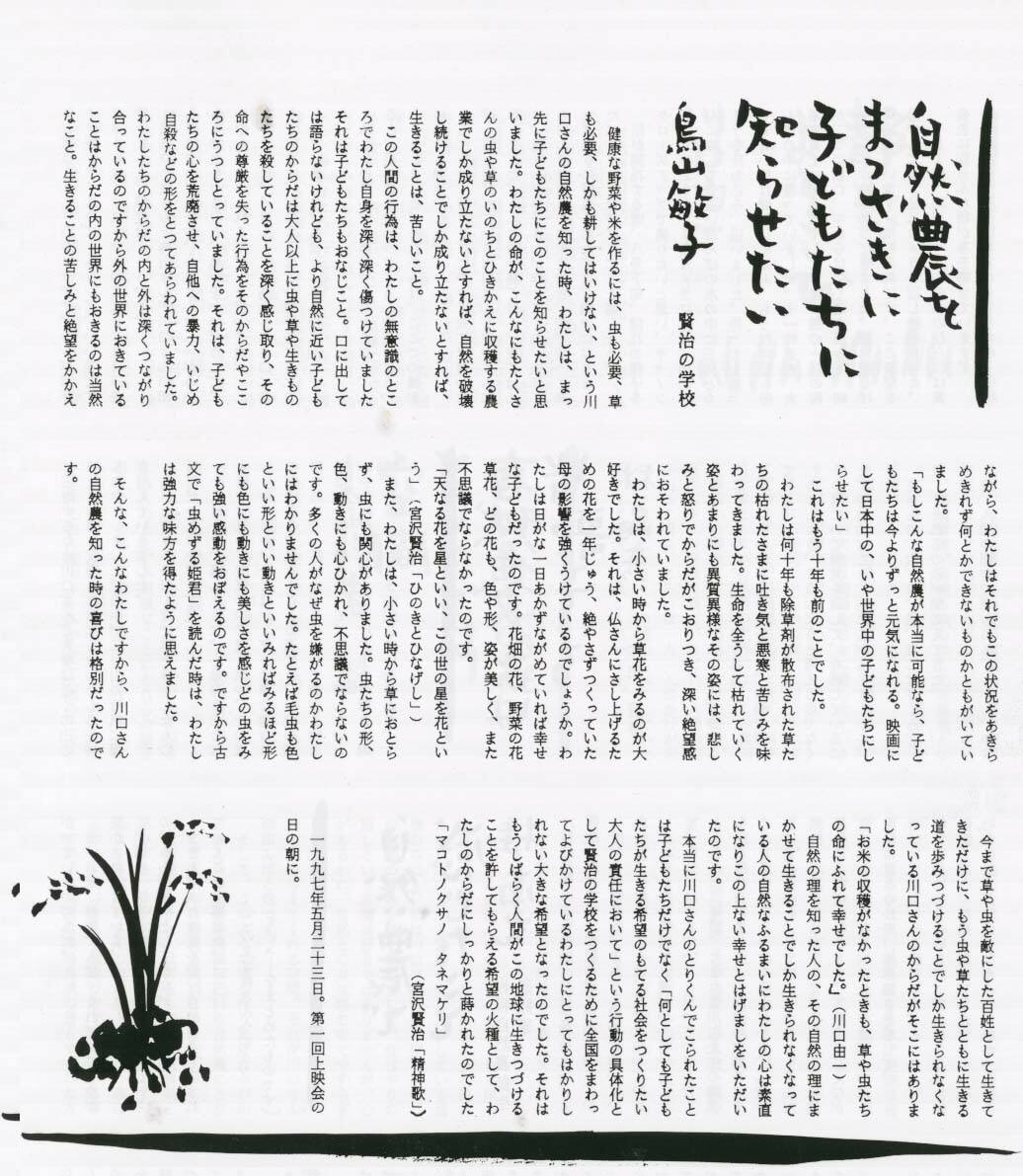 今回は奈良県で自然農を実践しておられる、川口由一さんの講演です。