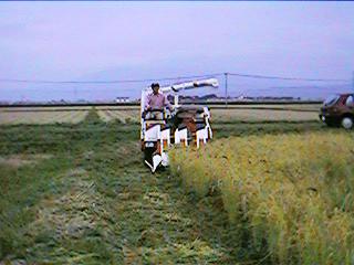 私が農業に携わった頃(20年ほど前)すでにコンバインが主流となっておりました。我が家でもコンバインは買ったばかりで、稲刈り=コンバイン、という図式が頭にあります。そんなわけで、刈り取った稲束を上手に結わえません。体験稲刈りなんかで都会に住む皆さんと稲刈りする機会があるのですが、むしろ、学生時代は田舎で稲刈り手伝っていたんだ、という方々のほうが私より上手だったりします。 |
